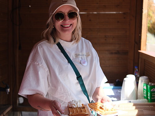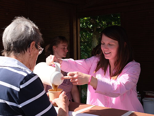 Bei herrlichem Sonnenschein und musikalischer Begleitung verwöhnten die jungen Damen alle Anwesenden mit selbstgebackenen Waffeln und duftendem Kaffee. Mit viel Herz, Engagement und Freude schenkten sie unseren Bewohnerinnen und Bewohnern einen unterhaltsamen, geselligen und rundum gelungenen Nachmittag.