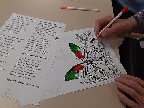 In regelmäßigen Abständen organisiert unsere Gemeindepädagogin Ulrike Martin Gruppenaktivitäten für Bewohner*innen. Dabei bringt Sie jedes mal wunderbare Ideen für Bastel- und Kreativarbeiten für unseren Seniorinnen und Senioren mit.